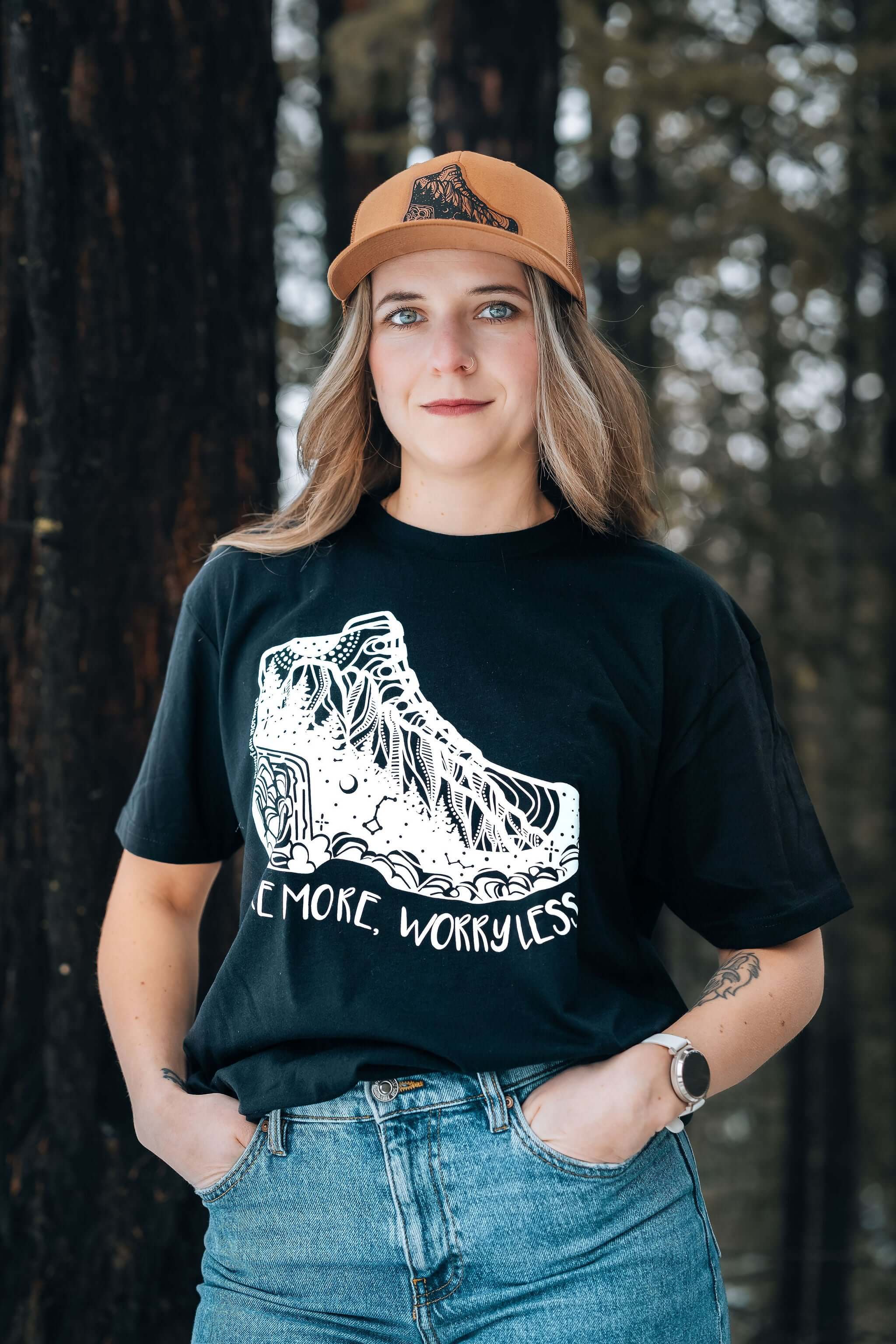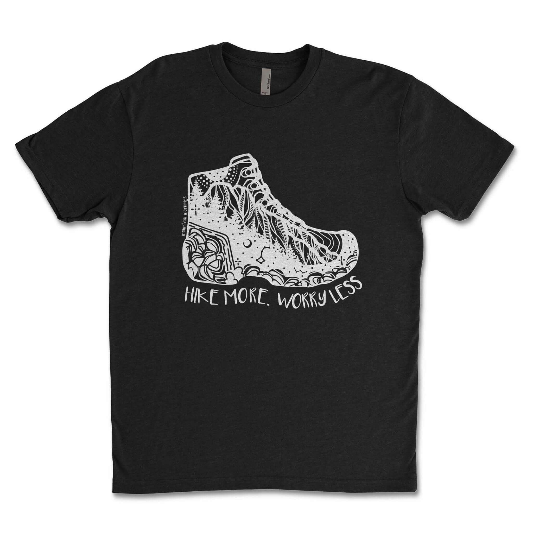 Hike More, Worry Less; Unisex T-shirt, Responsibly Made