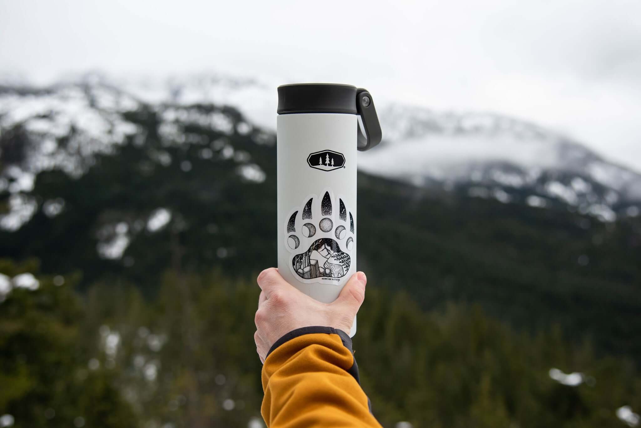 Mountain Mornings outdoor stickers are made to travel — from water bottles and tumblers to laptops, windshields, and any smooth surface that could use a touch of the outdoors.